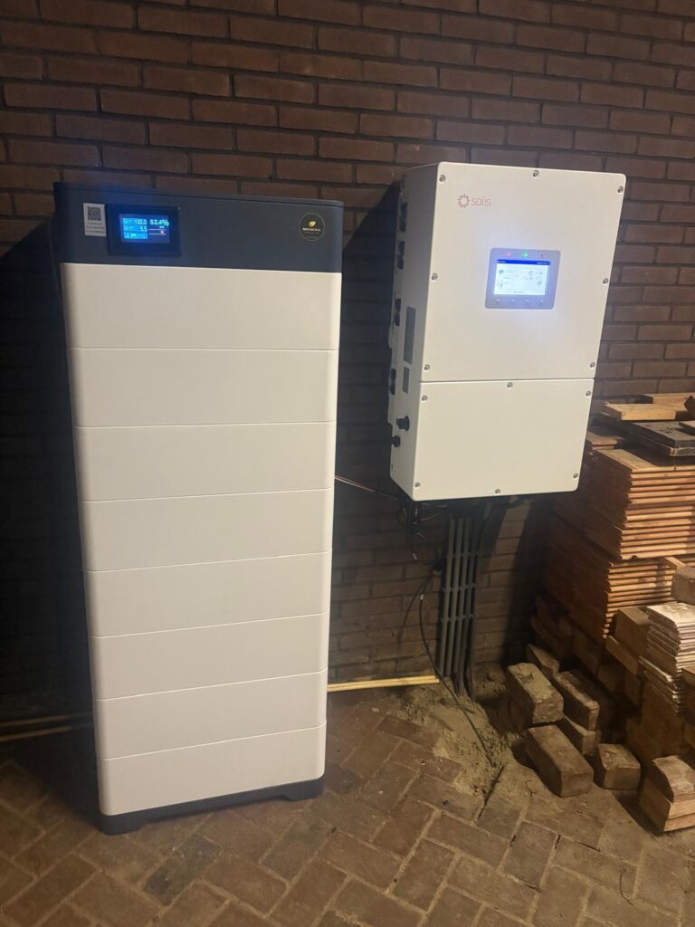 Klant heeft al meerdere zonnepanelen draaien en heeft hier een Nova40 aan toegevoegd samen met een Solis hybride omvormer van 30kW. Deze voorziet de gehele woning van energie. Daarnaast is hier ook een generator op aangesloten. Zo is de klant altijd voorzien in elke omstandigheid!